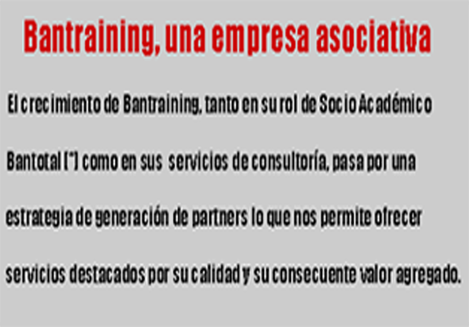 El crecimiento de Bantraining, tanto en su rol de Socio Académico Bantotal (*) como en sus servicios de consultoría, pasa por una estrategia de generación de partners, lo que nos permite ofrecer servicios destacados por su calidad y su consecuente valor agregado.
